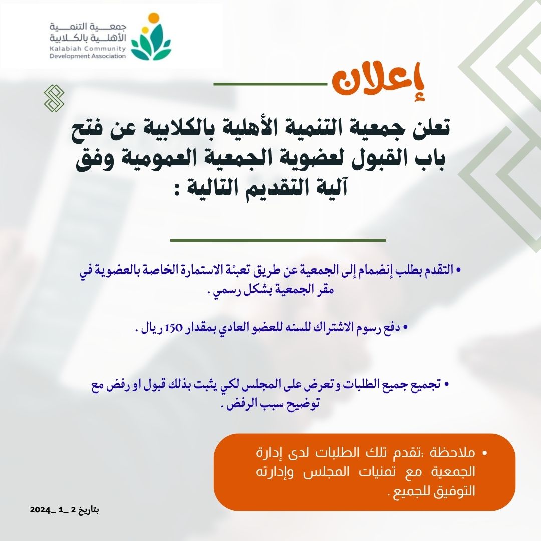 إعلان للإنضمام لعضوية الجمعية العمومية .